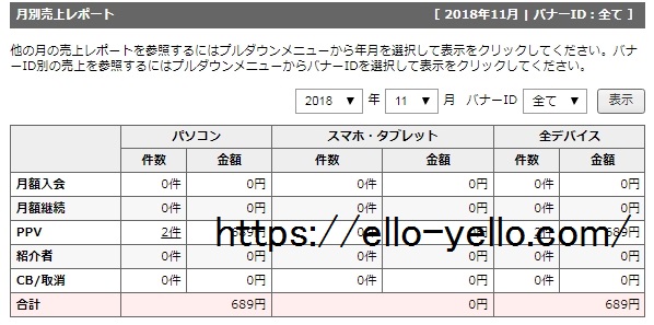 TOP > エログ収益 > 2018年11月度のアダルトアフィリエイト結果 2020年4月30日 2018年11月度のアダルトアフィリエイトの報酬結果を発表します。 35279円 という結果でした。 DMMアダルトアフィリエイト https://affiliate.dmm.com/fee/rate/adult/ バナーブリッジ https://www.bannerbridge.net/ APEX(DUGA) https://duga.jp/aff/ プレミアムアフィリエイト https://www.preaf.jp/ DTI https://aff