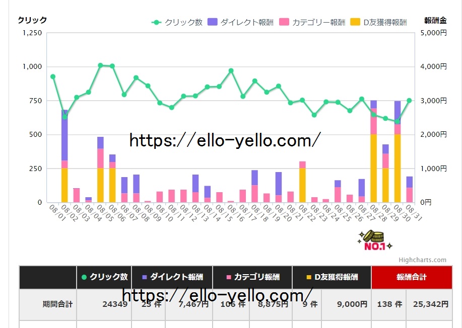 2017年8月度のアダルトアフィリエイト結果