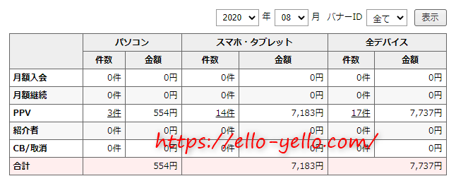 では、2020年8月度のアダルトアフィリエイトの報酬結果を発表します!
