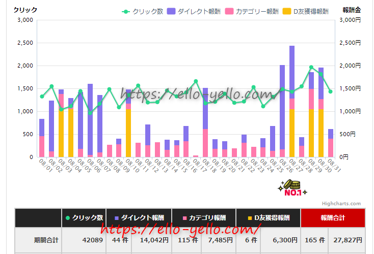 先月よりもクリック数が上がってきました。D友報酬も6件と好調♪