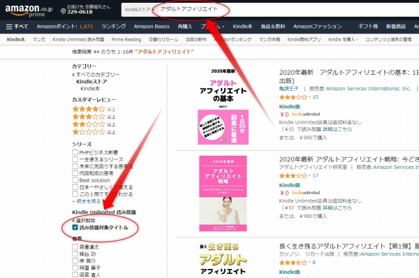Amazonプライムに入会するとKindle Unlimited読み放題のサービスを利用することができます。雑誌の読み放題もありますが、Kindleの中の読み放題対象タイトルからアフィリエイト系の本を読むことに使っています。Kindleで検索をかけた後に『読み放題対象タイトル』にチェックを入れるとKindle Unlimited読み放題だけを抜き取ることができます。雑誌の読み放題では週刊SPAなどが最新版が見れないなど、よくないです。Amazonプライム入っているならぜひ利用してみてください。検索ワードは『アダルトアフィリエイト』、『アフィリエイト』、『ブログ』などでためになるのがいろいろ出てきます。