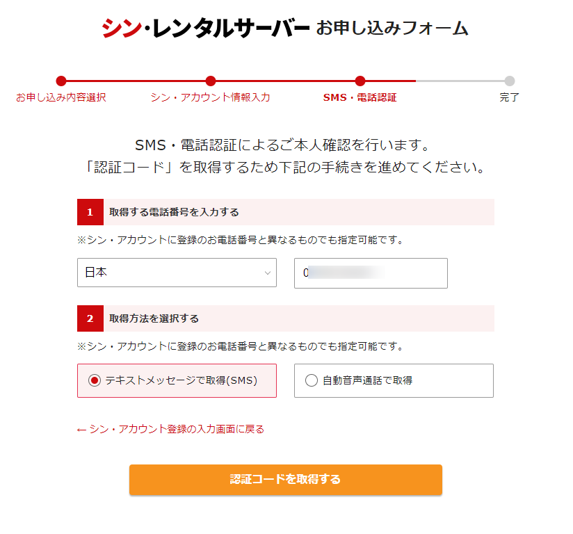 シンレンタルサーバーもカラフルボックスと同様にSMSでの認証が必要です