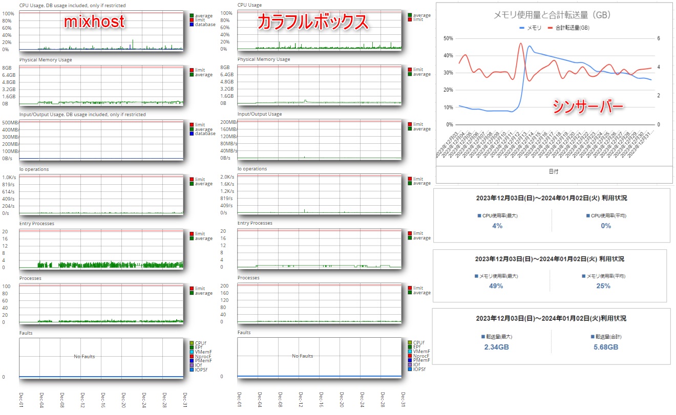 12月もシンサーバーで原因不明のメモリ使用量増大がありました。