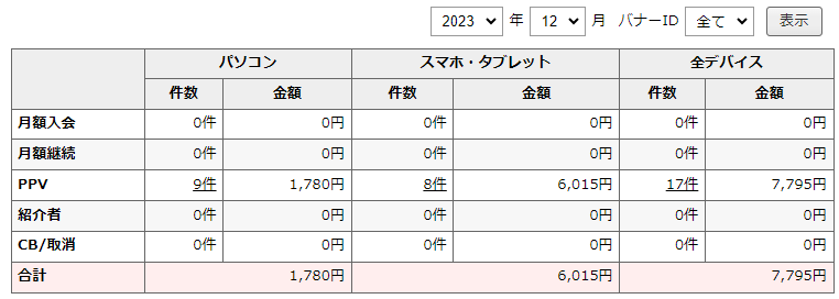 では2023年12月度のアダルトアフィリエイト報酬結果を発表します!