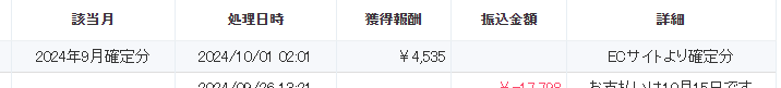 今月のバナーブリッジの報酬額は4535円でした。